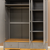Шкаф комбинированный, большое отделение со штангой и полкой за двумя дверями, отделение с полками за одной дверью.