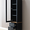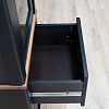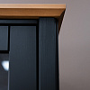 Корпус и фасады шкафа изготовлены из массива сосны, донья ящиков из оргалита. Корпус и фасады окрашены в черный цвет, а карниз, перекрытие над ящиками и нижняя планка – в цвет антик. Через покрытие антик можно рассмотреть природную текстуру сосны. Эту же модель шкафа можно заказать в других отделках: «белый/антик» и «серый/антик». Фасады шкафа, нижняя планка и ножки декорированы фрезеровкой, в неброском дизайне отлично смотрятся металлические ручки-кнопки с эффектом старения. Стенки ящиков окрашены в цвет корпуса и фасадов. Для окрашивания применяются матовые лаки шведской компании Becker Acromа. Лаки сертифицированы по европейским стандартам качества, они стойкие, не пахнут и безопасны для аллергиков.