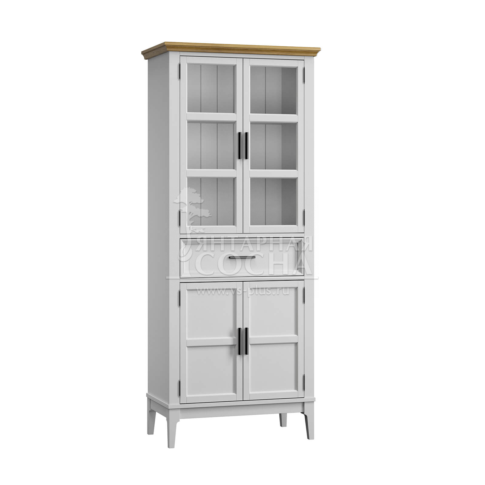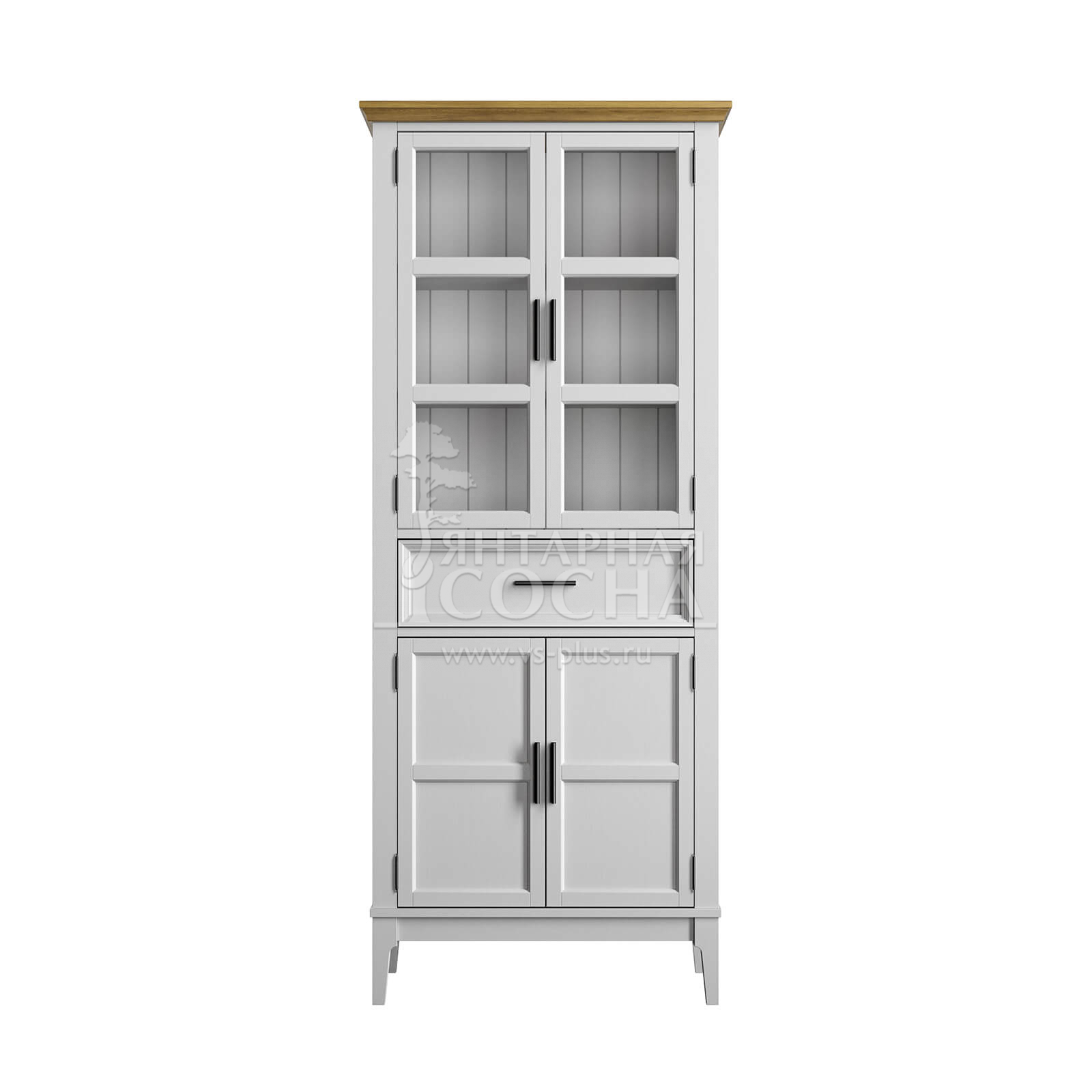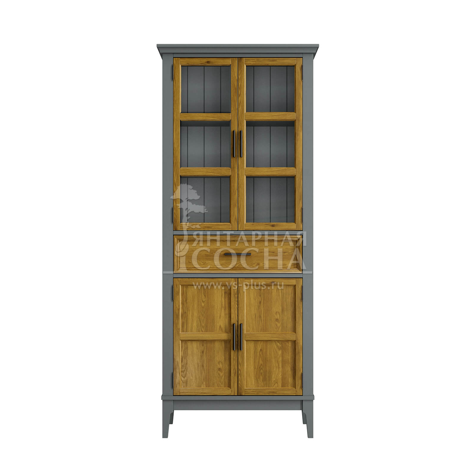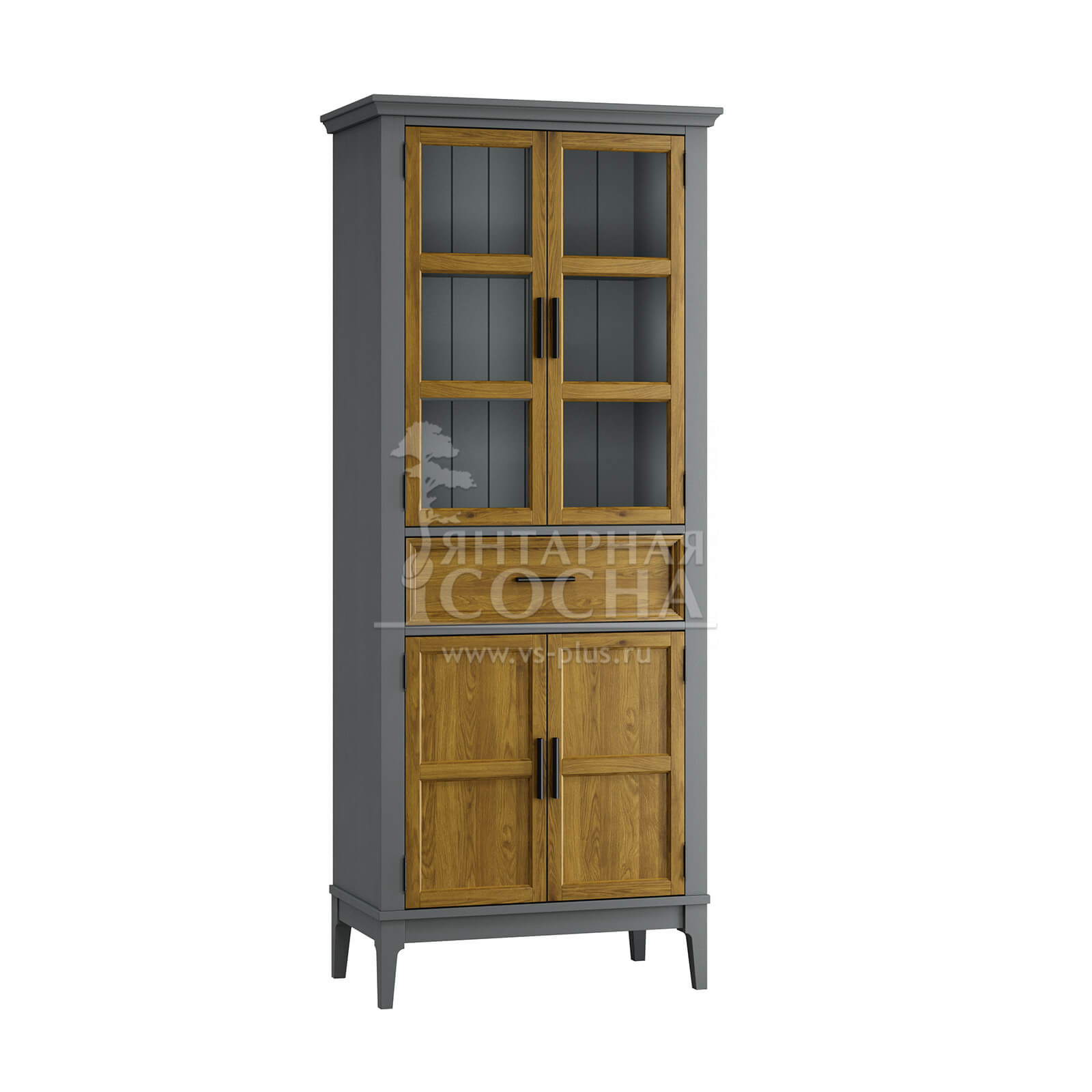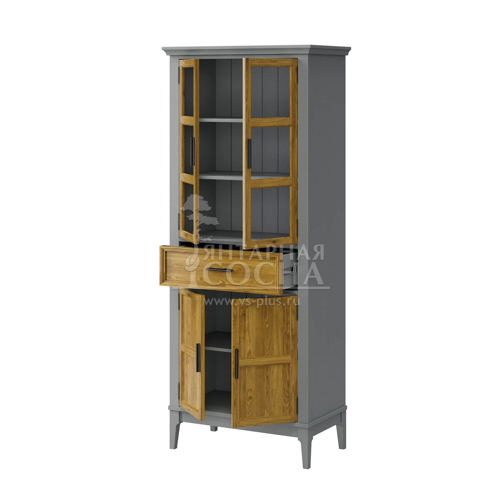 Изящный высокий шкаф из натурального массива сосны — гармоничное сочетание классической эстетики и современного функционала. Эта модель станет настоящим украшением вашей кухни или столовой, позволяя эффектно презентовать посуду и рационально организовать хранение.