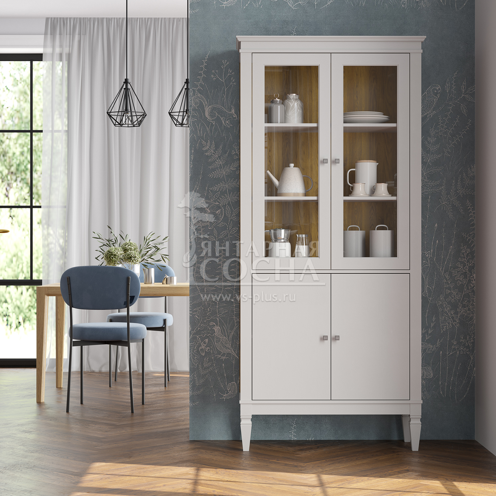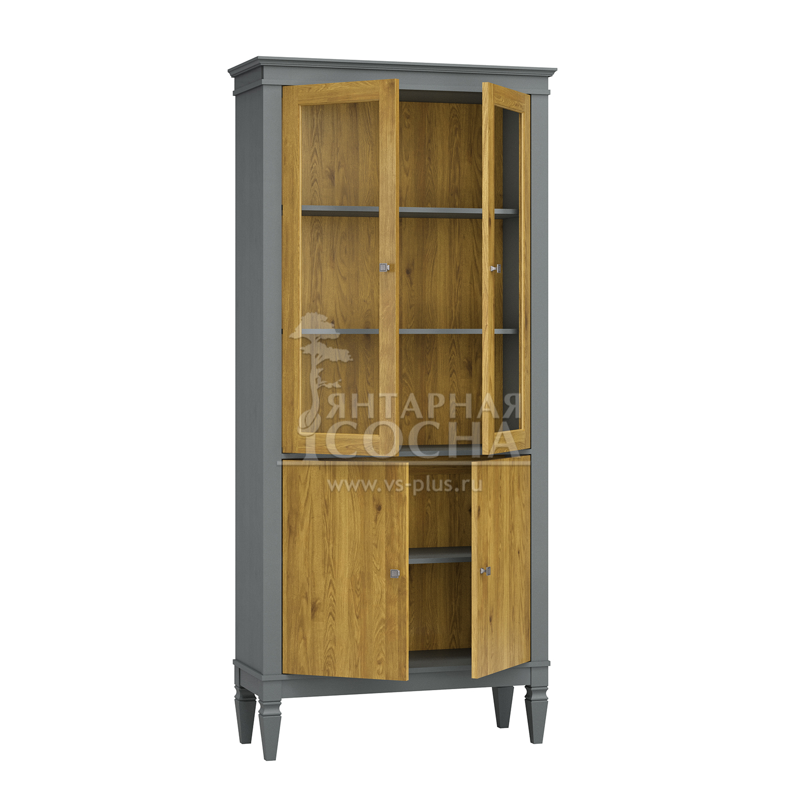 Шкаф для посуды “Ольса-С” 220 - отличный вариант для хранения любимых книг. Здесь они будут в полном порядке и всегда под рукой. Оснащен четырьмя вместительными полками за двумя стеклянными дверями и двумя глухими дверями. Устойчиво держится на высоких ножках. Хороший вариант для гостиной, детской комнаты или кабинета. Может использоваться самостоятельно или в сочетании с другими предметами из этой коллекции.
