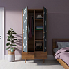 Двухстворчатый шкафы "Berber" имеет два глубоких, выдвижных ящика на шариковых направляющих и два отделения за дверками. Слева за дверью располагается съемная штанга, а справа три полки. Шкаф достаточно функционален и не займет много места, ведь ширина всего 90 см. Можно разместить в спальне или прихожей.