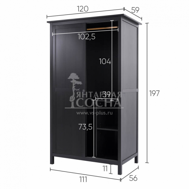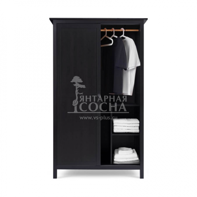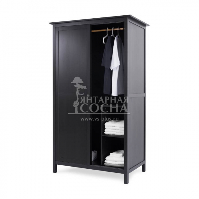 Внутренняя организация: Две полки для хранения постельного белья, полотенец или одежды. Деревянная штанга по всей ширине шкафа.
