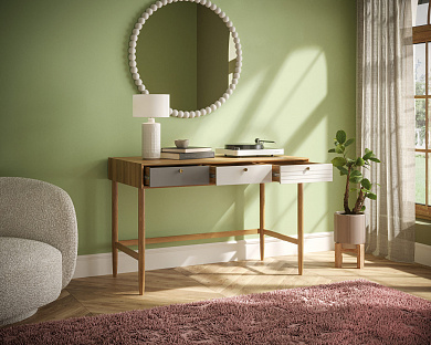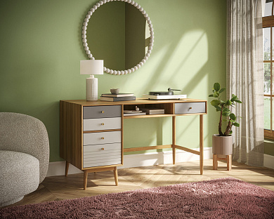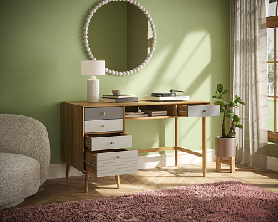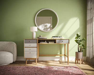 Данный шкаф становится визуальным якорем в пространстве — он объединяет в себе практичность хранения и декоративную функцию. Благодаря нейтральной палитре и чистым формам, он не перегружает комнату, а наоборот, создаёт атмосферу уюта и порядка и задаёт тон всему интерьеру — расслабленный, тёплый и современный.