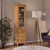 Модель выполнена из массива сосны — натурального и прочного материала с выразительной текстурой дерева. Узкий формат позволяет разместить витрину в гостиной, столовой, кухне или даже в прихожей, не перегружая помещение.