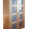 Шкаф выполнен из массива сосны. Двери шкафа распашные. Внутри штанга для одежды и полка (в верхней и нижней части шкафа). Вставки - стекло матированное.
