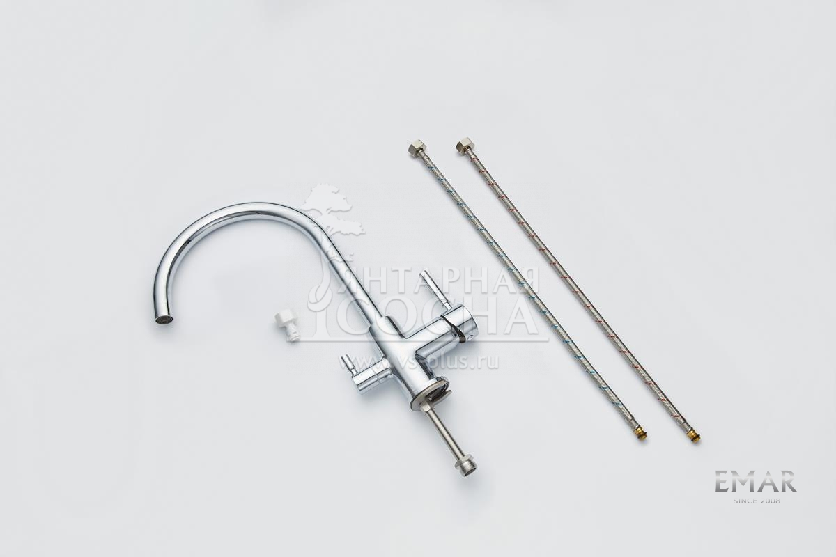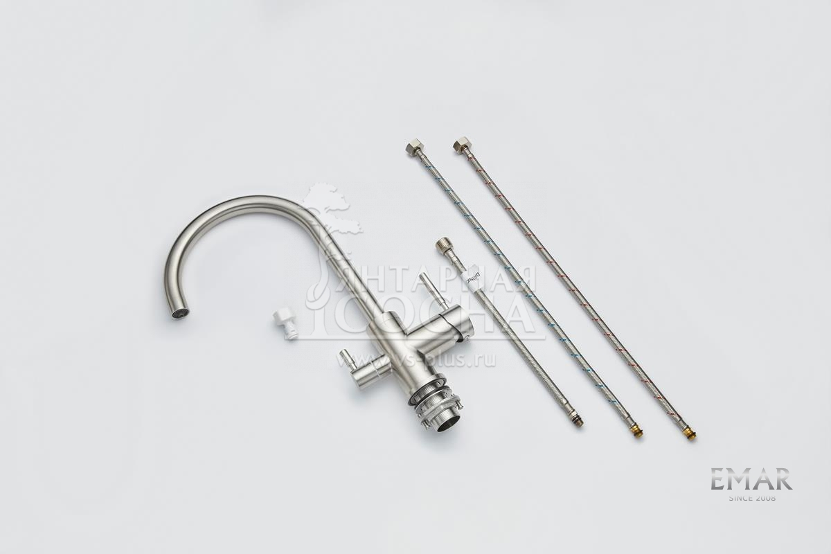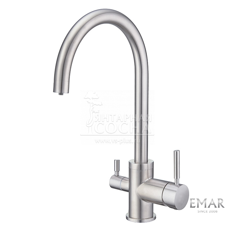 Дизайнерский кухонный смеситель в отделке хром и матовый хром (сатин). Универсальный металлический оттенок гармонично сочетается с мойками EMAR, в том числе с PVD-покрытием и классическими металлическими поверхностями.