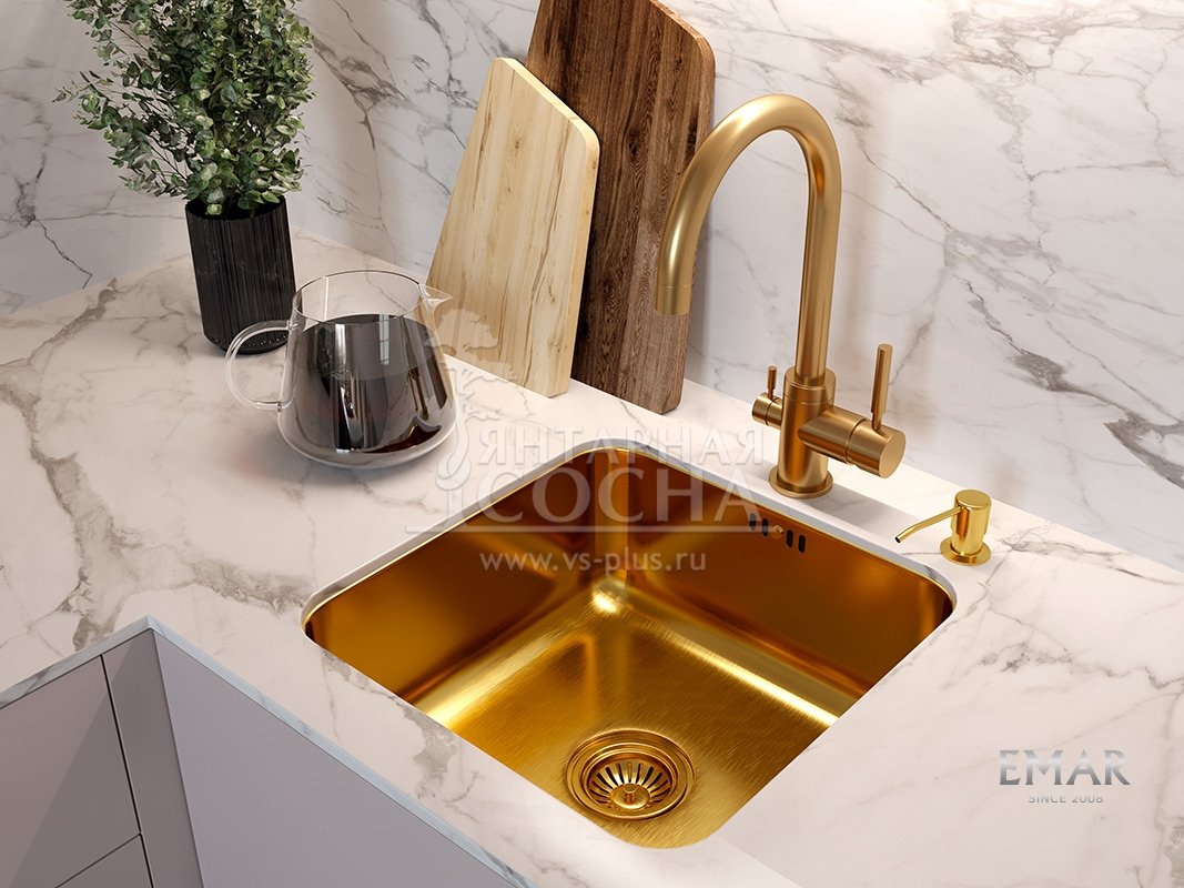 Дизайнерский смеситель различных цветов. Смеситель по цвету сочетается с PVD мойками EMAR.