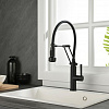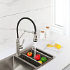 Гибкий излив значительно увеличивает рабочую зону и повышает эффективность использования смесителя. Однорычажное управление обеспечивает простую и точную настройку температуры и напора воды. На изливе расположена дополнительная кнопка для переключения режимов подачи воды: струя / душ, что особенно удобно при интенсивной эксплуатации.