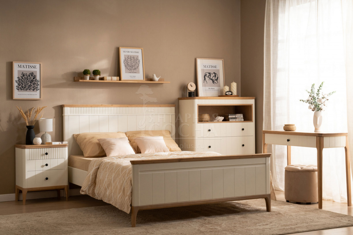 Все элементы спальни выдержаны в едином стиле и формируют цельное, сбалансированное пространство для отдыха. «Грета» подойдёт как для квартиры, так и для загородного дома или дачи, где особенно ценится ощущение тишины и природного уюта.