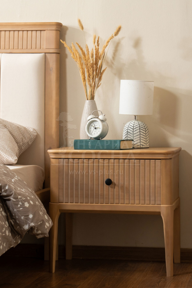 Набор мебели для спальни «Грета» выполнен из массива сосны и создаёт атмосферу спокойствия и уюта. Натуральное дерево с живой текстурой наполняет пространство теплом и делает интерьер мягким и гармоничным.