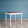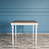 Кухонный стол выполнен в форме прямоугольника шириной 90 см и глубиной 78 см. Нежный белый цвет, патина (по желанию), круглые ножки кабриоль и столешница из массива ясеня делают данный стол настоящим произведением искусства!