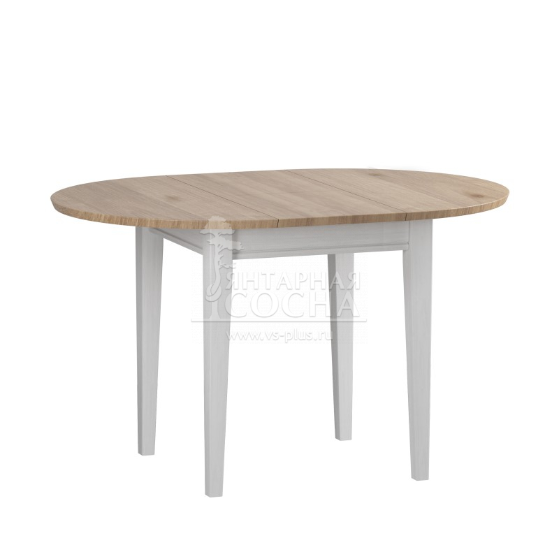 Раскладной обеденный стол из массива сосны. В сложенном состоянии вставка располагается под столешницей. Диаметр стола в сложенном состоянии 90 см, в разложенном состоянии размер стола 90х125 см.