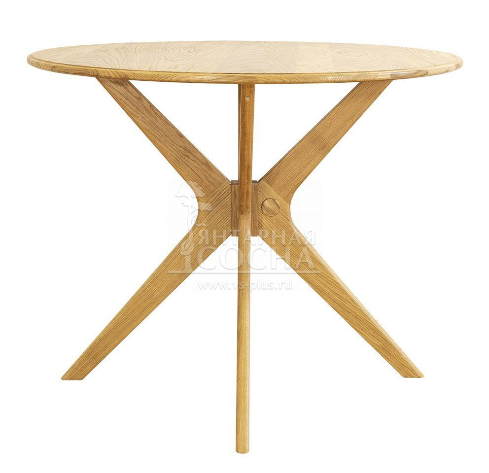 Компактный круглый стол из массива дуба. Стол выполнен из сращенного щита 100% массива дуба, сверху шпон. За счет шпона поверхность столешницы выглядит, как из цельноламельного щита. Стол может быть изготовлен в нескольких цветах на выбор. Подстолье стола закрепляется за счет деталей из металла, что придает конструкции особую жесткость