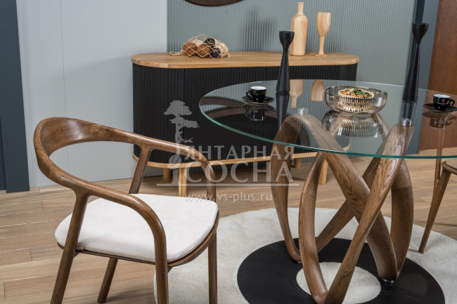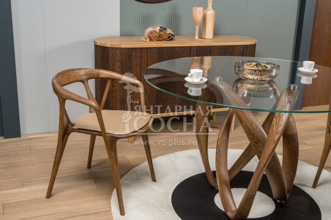 Шикарный обеденный стол в изысканном стиле. Столешница выполнена из стекла. Нога выполнена из массива дуба. Изюминка стола - оригинальная опора Используется стекло толщиной 8 мм. Стол может быть изготовлен в нескольких цветах на выбор.