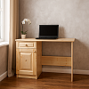 Простой и очень удобный – данный письменный стол идеален для работы с документами или ноутбуком. Ненужные в данный момент канцтовары можно убрать во встроенную тумбочку, в которой есть выдвижной ящик для мелких предметов (ручек, карандашей и прочего), а также большое отделение, разделенное полкой на два отсека.Тумба может быть как с правой так и с левой стороны.