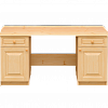 Стол письменный,состоит из двух симметрично расположенных шкафов, с выдвижными ящиками и двумя дверями за которыми располагаются две вместительные полки.Тумбы соединены планкой для большей устойчивости стола.