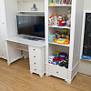 Лакокрасочные материалы дают возможность изготавливать мебель, которая соответствует европейскому стандарту безопасности детских игрушек EN71-3. Глубина стола 60 см. Тумба может быть расположена как слева так и справа: определяется при сборке стола. В варианте цвета белый воск/антрацит в серый цвет окрашена столешница.