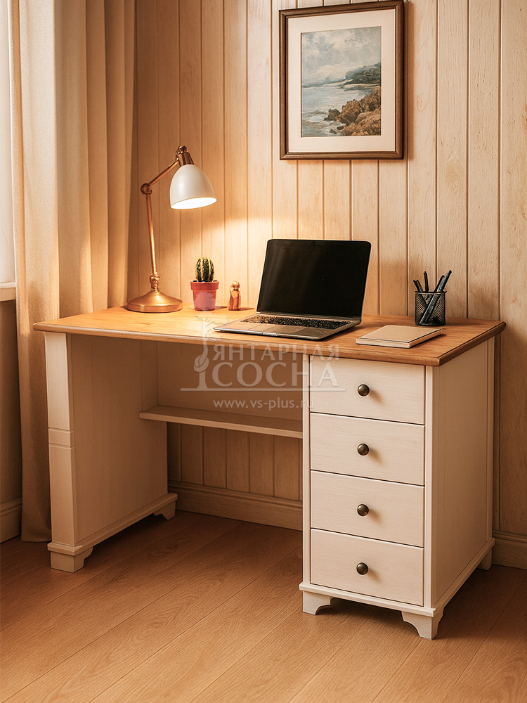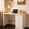 Удобный письменный стол подойдет как для строгого кабинета, так и для подростковой комнаты. Изделие становится еще более функциональным за счет ящиков и полки в нижней части стола. Тумба стола пожжет располагаться как с левой стороны, так и с правой стороны.