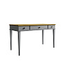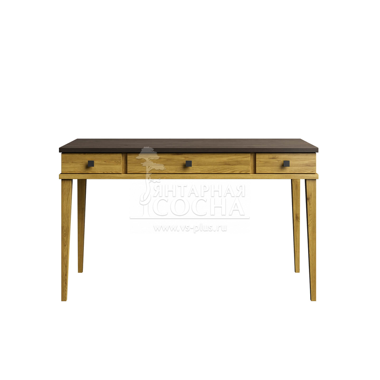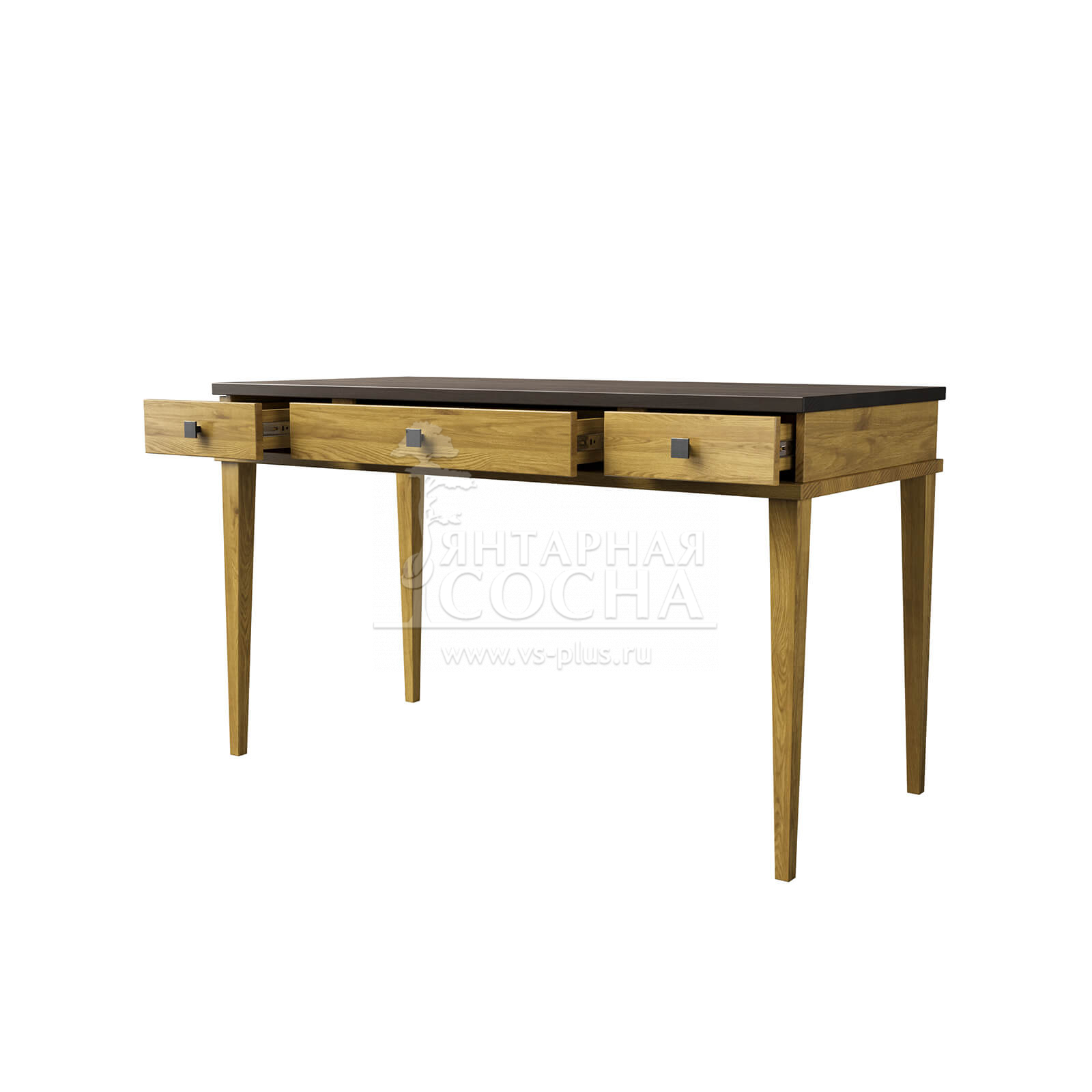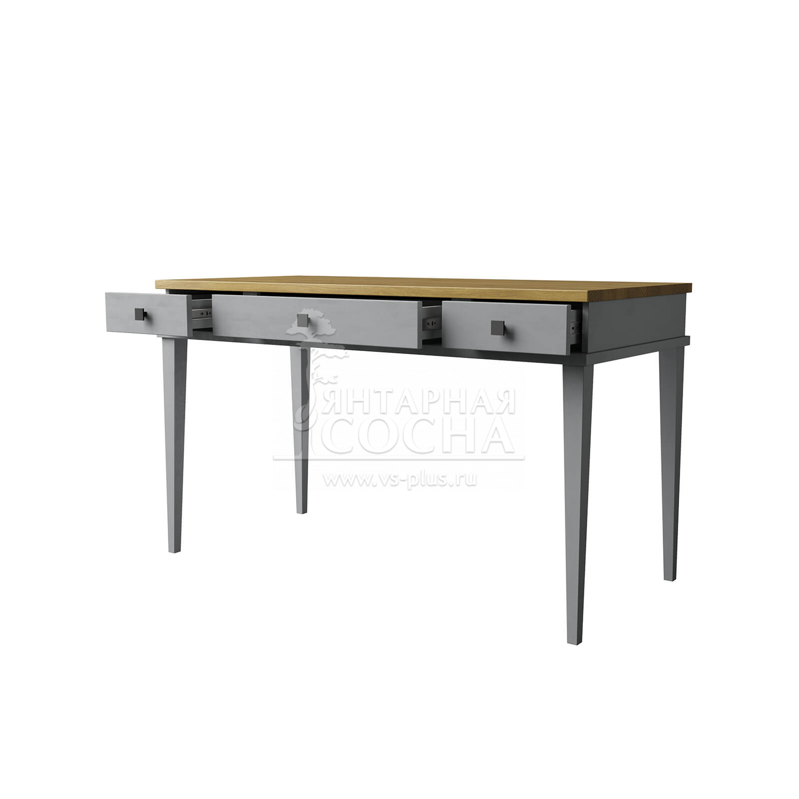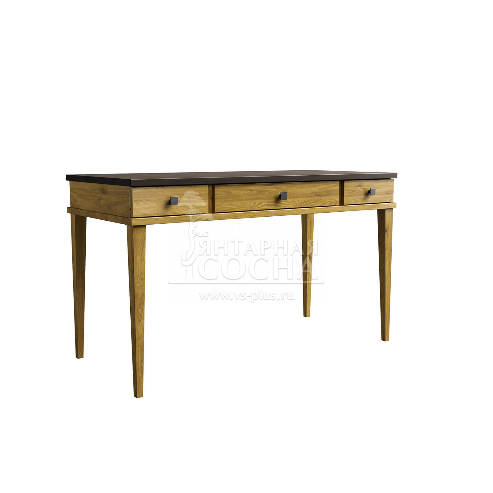 Модель выполнена из массива сосны и оснащена тремя вместительными ящиками полного выдвижения на телескопических направляющих. Фасады ящиков и столешница выполнены в оттенках «антик 24» и «колониал», что придаёт мебели выразительный контраст и подчёркивает её статусный вид.