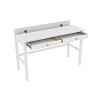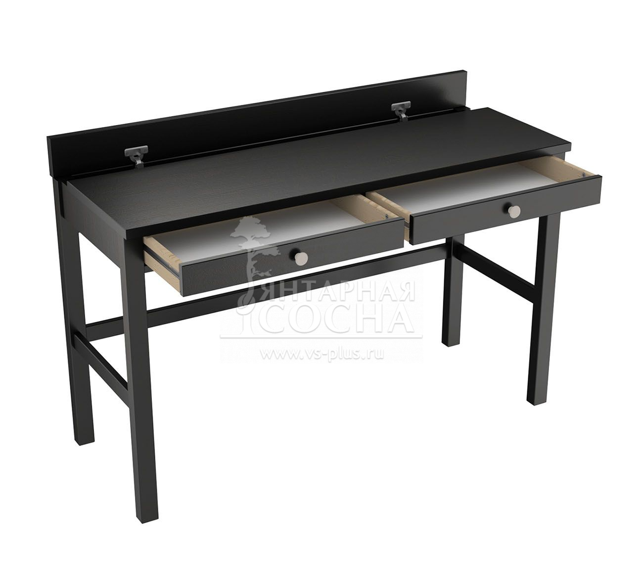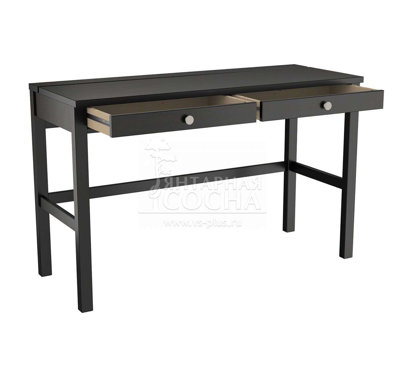 Модель выполнена из натурального массива сосны, что гарантирует долговечность и экологичность. Продуманная конструкция оснащена двумя вместительными выдвижными ящиками для хранения и встроенным кабель-менеджментом, позволяющим аккуратно скрыть провода.