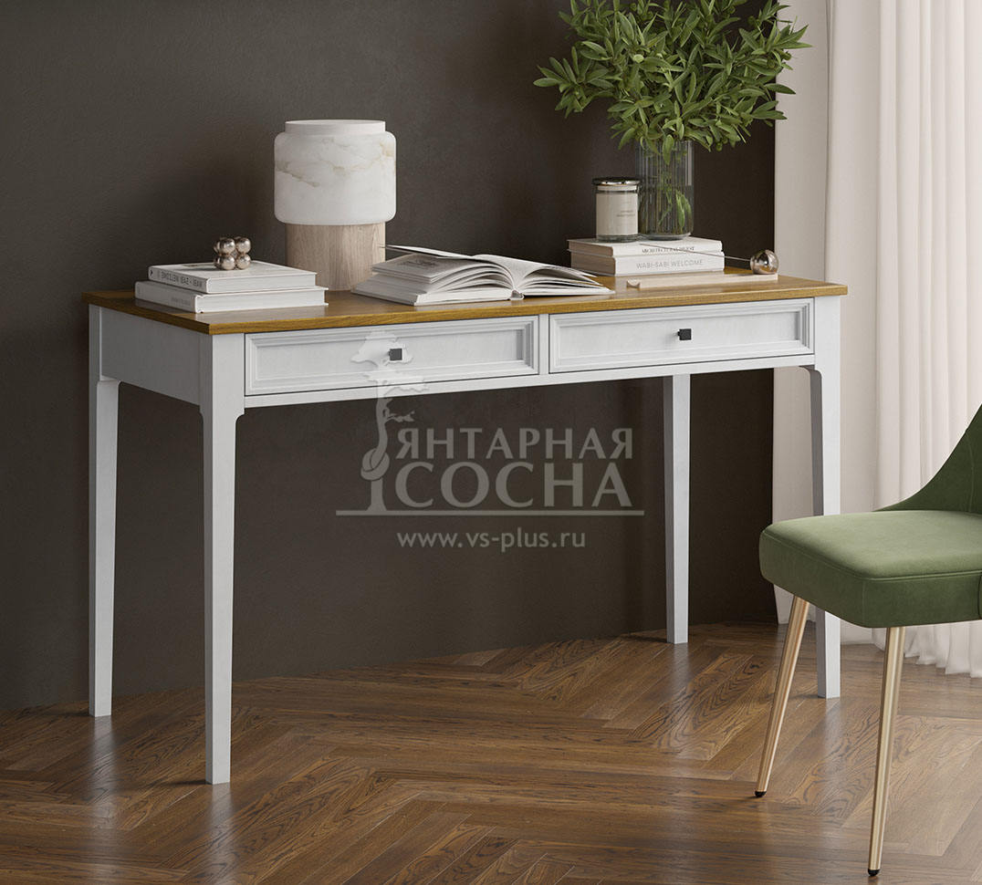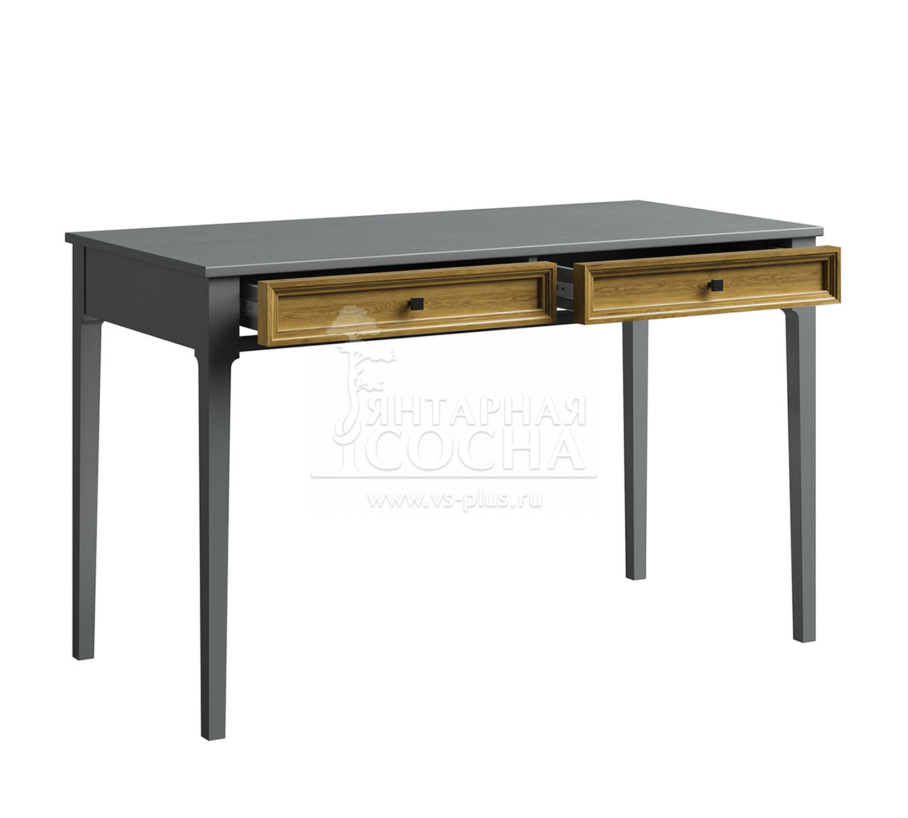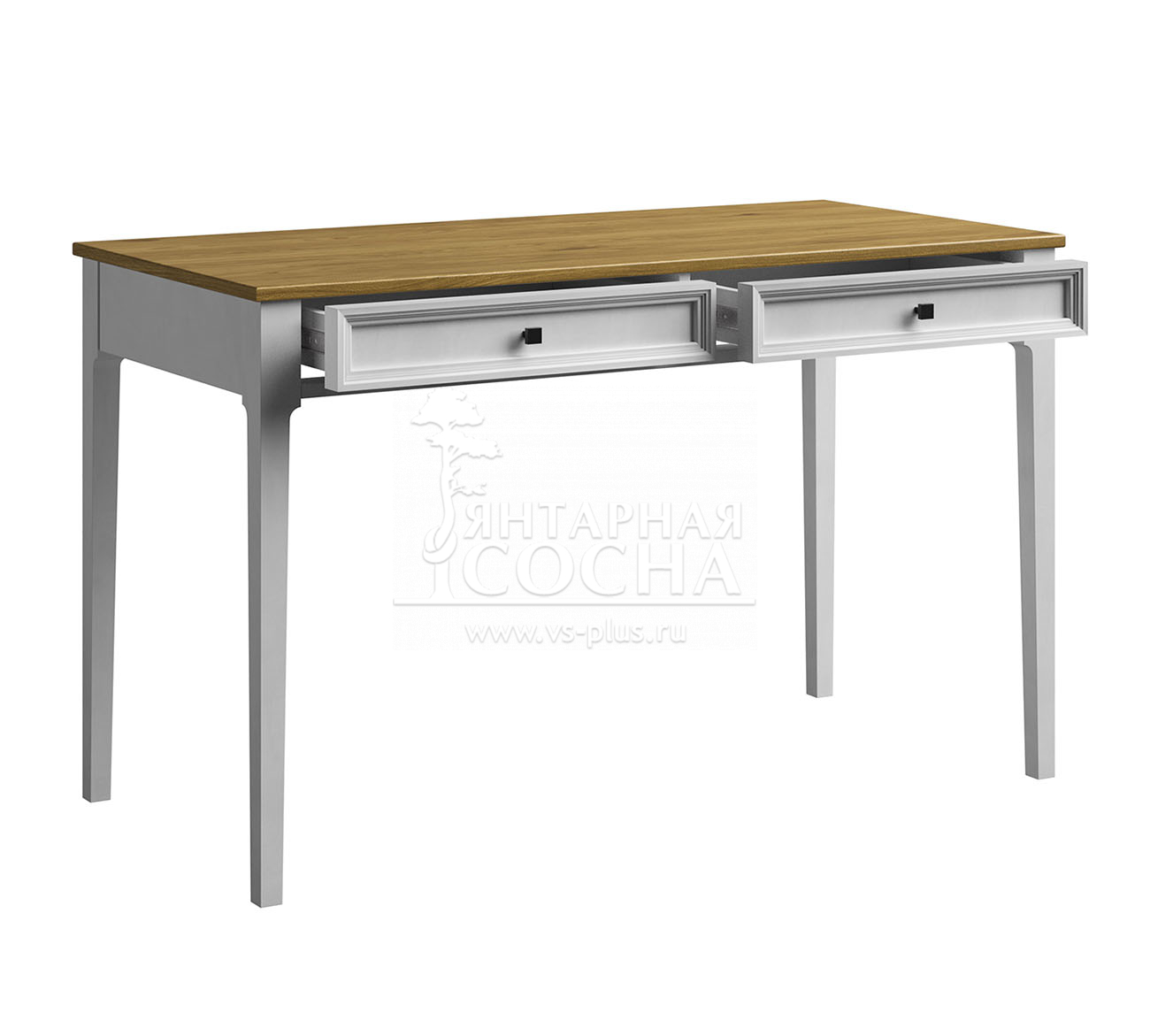 Просторная столешница комфортна для работы за компьютером, а под ней расположены два выдвижных ящика, в которых удобно хранить канцтовары, документы и повседневные мелочи. Ящики оснащены телескопическими направляющими полного выдвижения, обеспечивающими плавное и удобное открывание. Дно ящиков выполнено из HDF, что повышает надёжность и устойчивость конструкции.