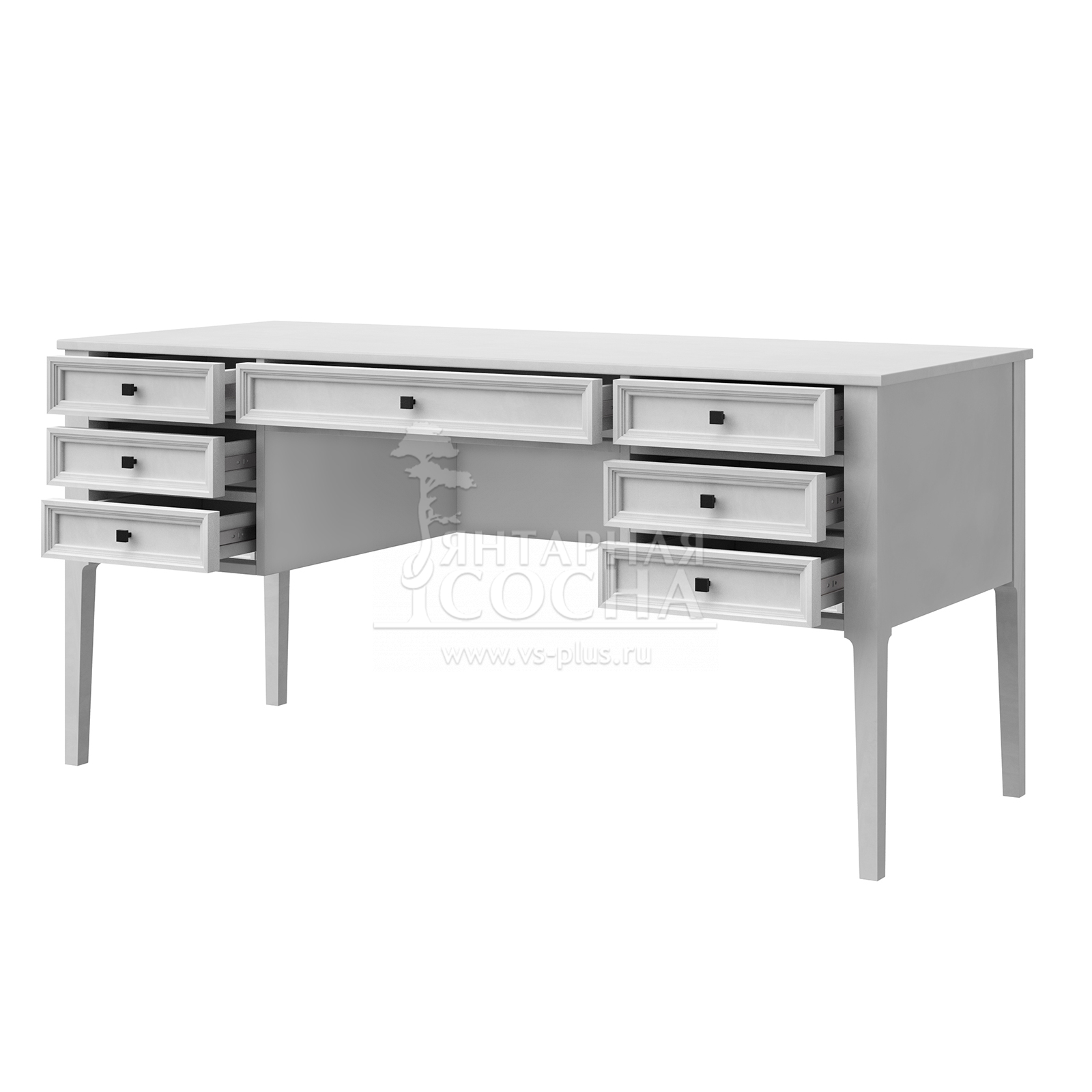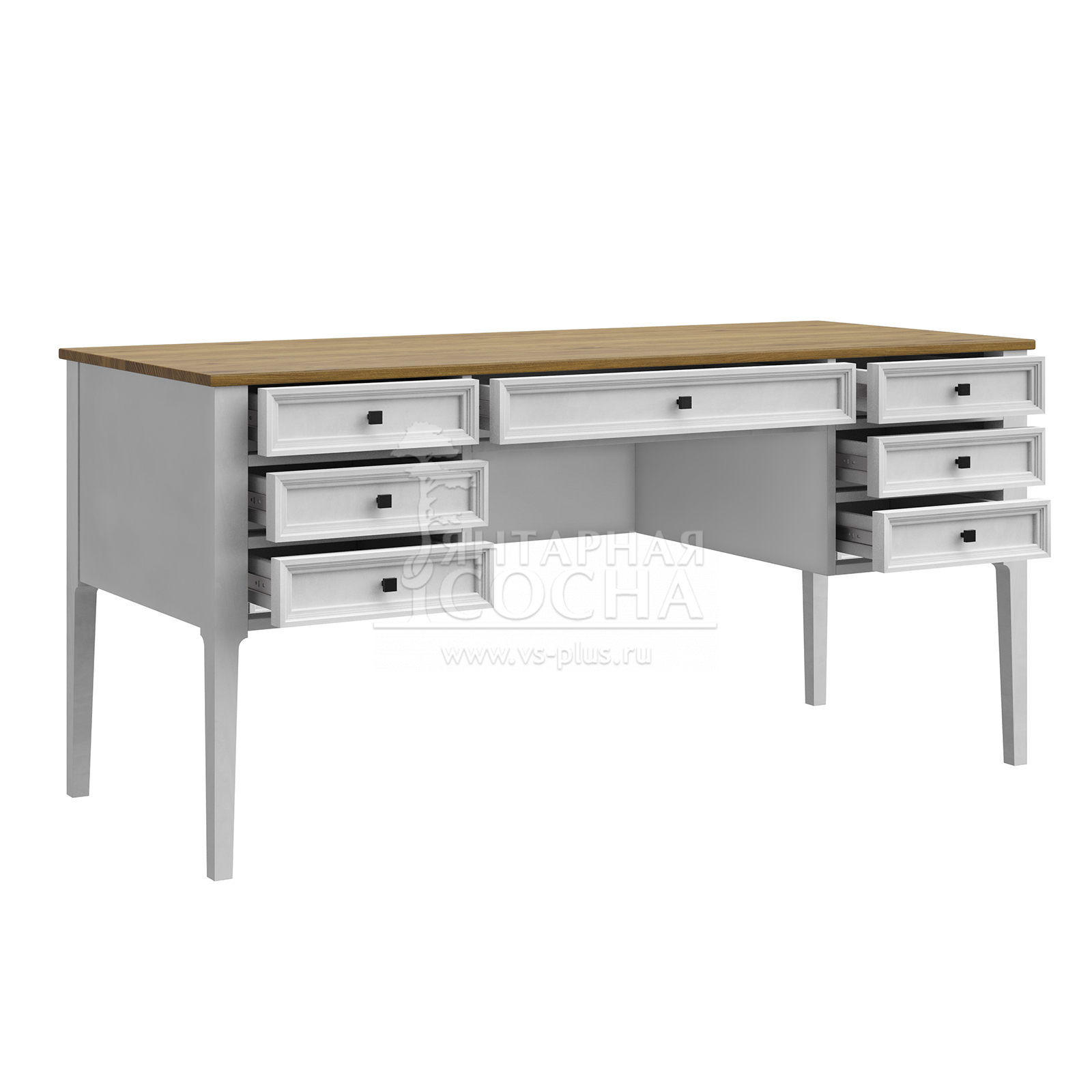 Стол оснащён вместительными ящиками на телескопических направляющих полного выдвижения — они открываются плавно и позволяют использовать внутреннее пространство полностью.