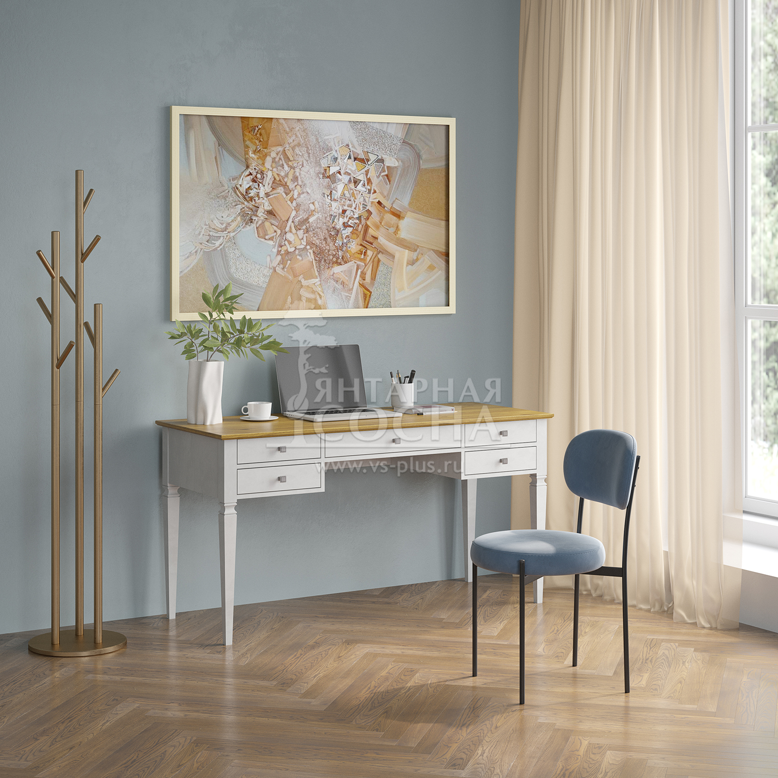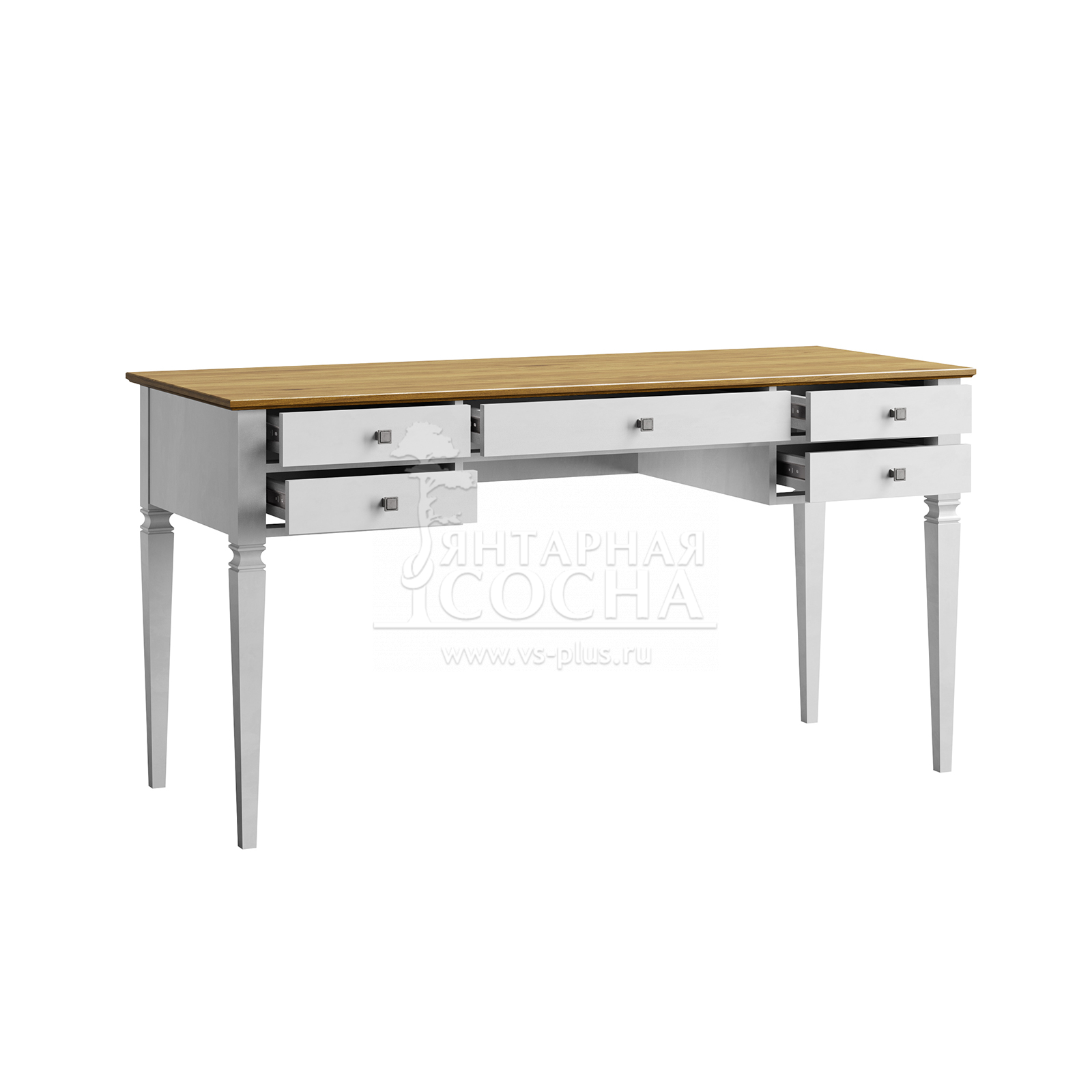 Широкая удобная столешница подойдет для работы за компьютером. Под ней расположено три выдвижных ящика для канцтоваров, документов и разных мелочей. Все детали сделаны из натурального массива дерева, что обеспечивает их прочность и надежность. Отличное приобретение для личного кабинета, гостиной или спальни. Широкая столешница удобна как для работы за компьютером, так и для рисования и другого ручного труда.