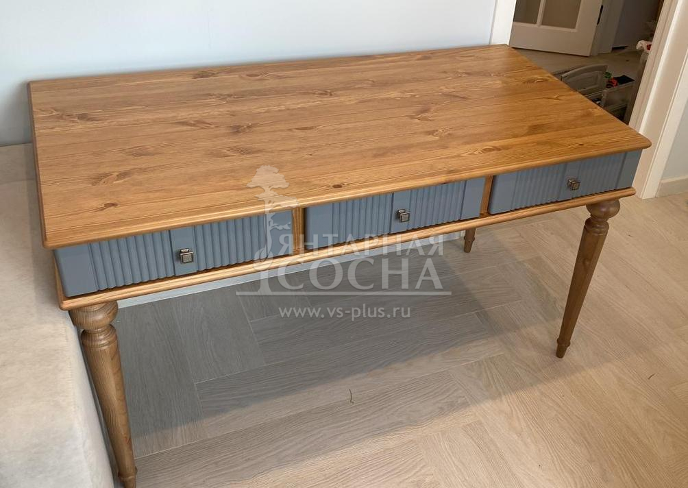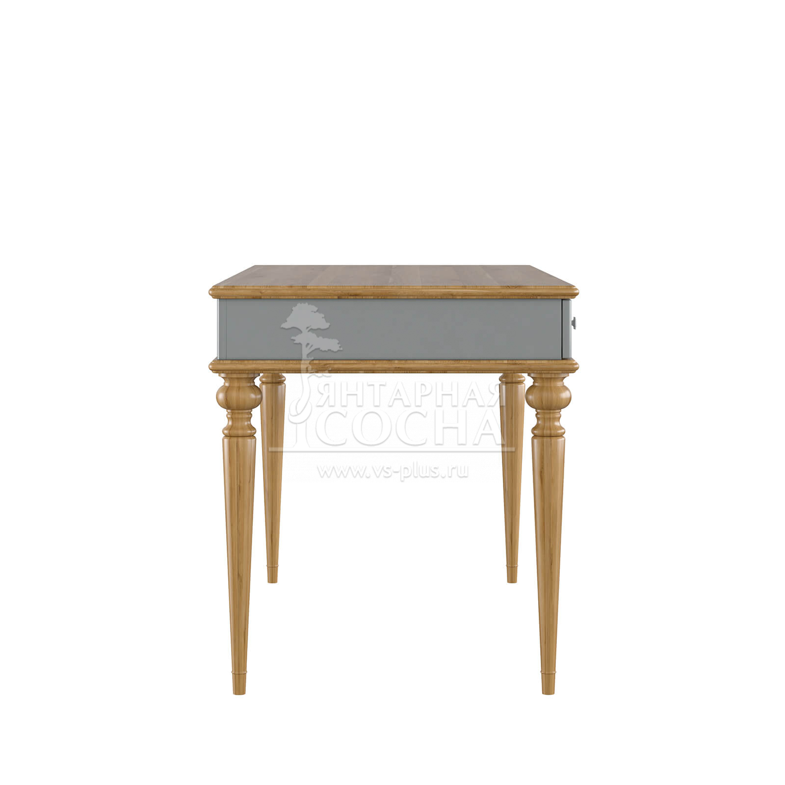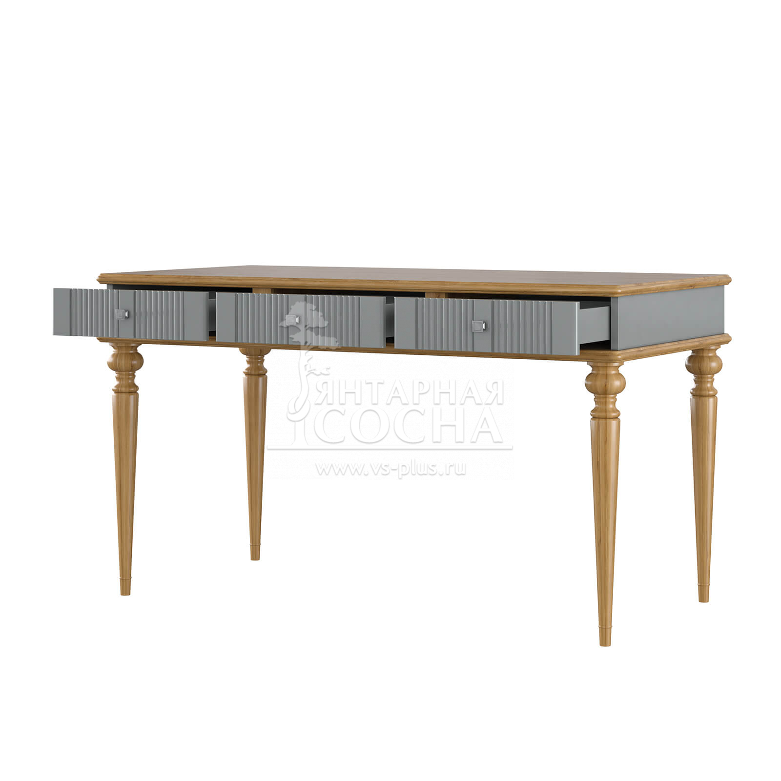 Классический письменный стол из коллекции “Рандеву” для поклонников светлых интерьеров. Широкая удобная столешница подойдет для работы за компьютером. Под ней расположено три выдвижных ящика для канцтоваров, документов и разных мелочей. Все детали сделаны из натурального массива дерева и МДФ, что обеспечивает их прочность и надежность. Отличное приобретение для личного кабинета, гостиной или спальни. Широкая столешница удобна как для работы за компьютером, так и для рисования и другого ручного труда.