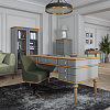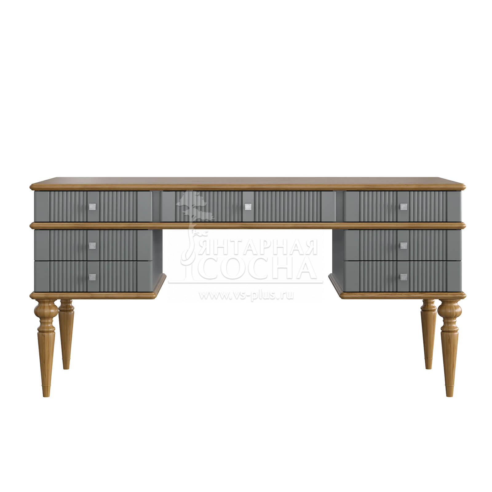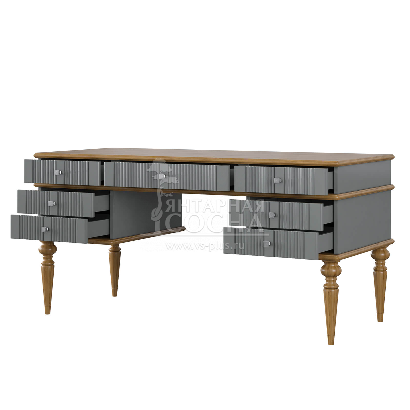 Классический письменный стол из коллекции “Рандеву” для поклонников светлых интерьеров. Широкая удобная столешница подойдет для работы за компьютером. Под ней расположено семь выдвижных ящиков для канцтоваров, документов и разных мелочей. Все детали сделаны из натурального массива дерева и МДФ, что обеспечивает их прочность и надежность. Отличное приобретение для личного кабинета, гостиной или спальни. Широкая столешница удобна как для работы за компьютером, так и для рисования и другого ручного труда.