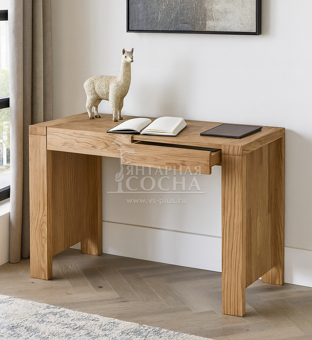 Стол в стиле кантри из коллекции “Рауна” отлично впишется в уют загородного дома или кабинет делового человека, которому по душе экологичный образ жизни. Его конструкция довольна проста: за удобной поверхностью вы сможете спокойно писать, рисовать или работать на ноутбуке, а в тумбе с 2 полками - хранить важные документы. Размер стола 120x76x60 см.