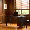 Стол сочетает в себе стильный дизайн и лаконичность линий. Такая мебель органично впишется в обстановку кабинета и станет его изюминкой. Для хранения бумаг и необходимых вещей предусмотрена компактная, но вместительная тумба с выдвижными ящиками. Оригинальная фурнитура и резные ножки стола придают оттенок роскоши, а темный оттенок выгодно подчеркивает оформление помещения. Изделие изготовлено из прочного и экологичного массива сосны.