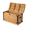 Массив сосны, обработанный восковым составом, сохраняет природную текстуру дерева, придавая мебели долговечность и благородный матовый блеск. Контрастная металлическая фурнитура и декоративные элементы в историческом стиле придают сундуку характер и особый шарм.