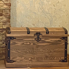 Сундук изготовлен из натуральной сосны в цвете палисандр. Покрытие поверхности мебели маслом позволяет досконально передать естественную расцветку материала. Предмет мебели украшен контрастной металлической фурнитурой и декором в историческом стиле.