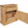 Модель включает одну распашную дверку и один выдвижной ящик на деревянных полозьях. За дверкой расположена полка, позволяющая удобно распределить хранение: мелочи можно разместить в ящике, а более крупные предметы — внутри тумбы. Деревянные ручки (2 шт.) подчеркивают натуральность и целостность дизайна.