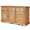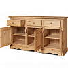 Модель оснащена тремя выдвижными ящиками на деревянных полозьях — практичным и надёжным решением, подчеркивающим натуральность изделия. Ниже расположены три распашные дверки, за каждой из которых находится отдельная внутренняя полка. Такая компоновка идеально подходит для аккуратного и организованного хранения: от посуды и текстиля до документов и бытовых вещей.