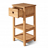 Функциональная часть включает один выдвижной ящик на деревянных полозьях с декоративным прорезанным сердечком, а также две открытые полки для хранения. Это удобное решение для размещения текстиля, аксессуаров, посуды или предметов декора.
