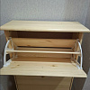 Массивная, оригинальная и привлекательная тумба займет достойное место в прихожей. Древесина из сосновых пород отличается влагостойкостью, выдерживает механические воздействия и имеет долгий срок эксплуатации. Модель имеет 3 ящика, обувь в которых располагается в вертикальном положении. Благодаря такому размещению, вы всегда сможете найти нужную пару ботинок или туфель.