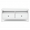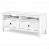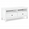 Тумба ТВ оснащена двумя выдвижными ящиками и двумя открытыми полками над ящиками. На ящиках стоят роликовые направляющие. Высокие ножки обеспечивают оптимальный доступ при уборке.