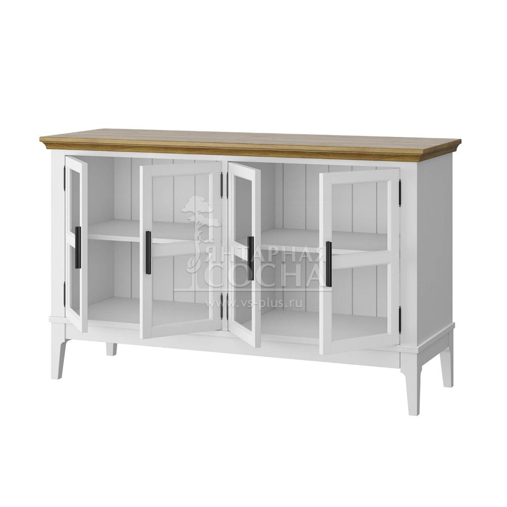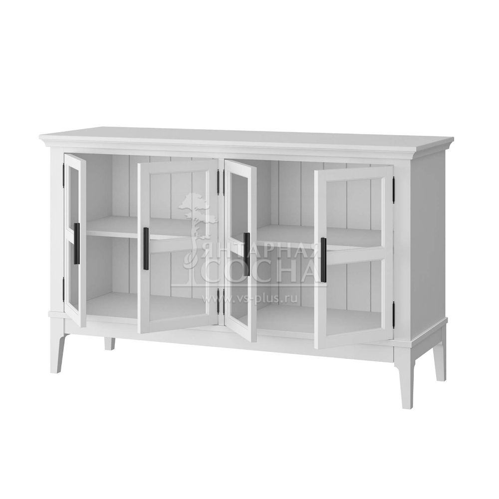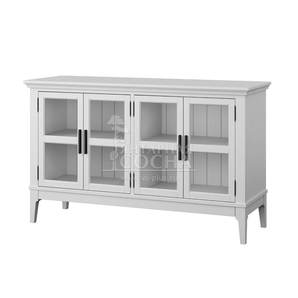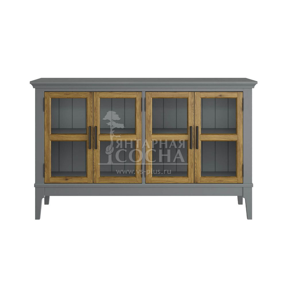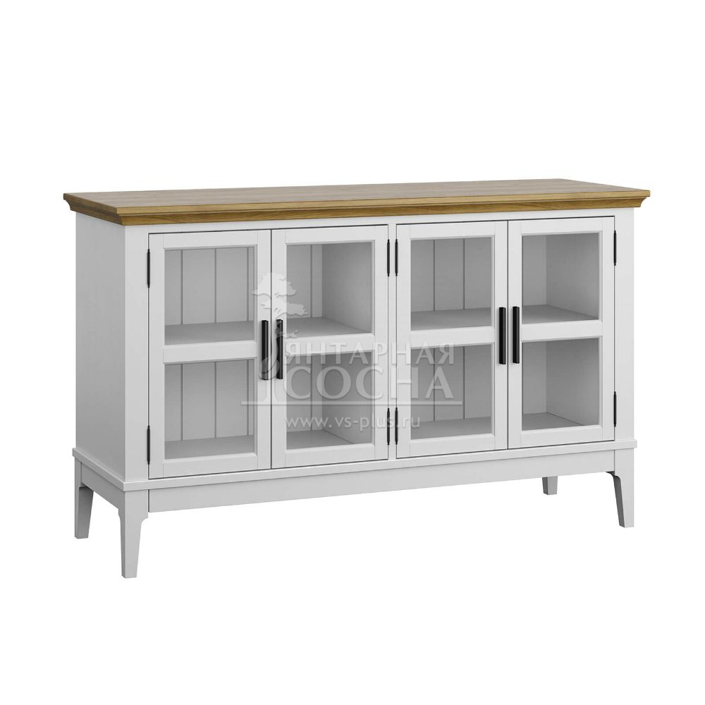 Два вместительных отсека за четырьмя стеклянными дверками — позволяют эффектно презентовать декоративные предметы и хранить технику.