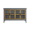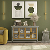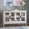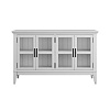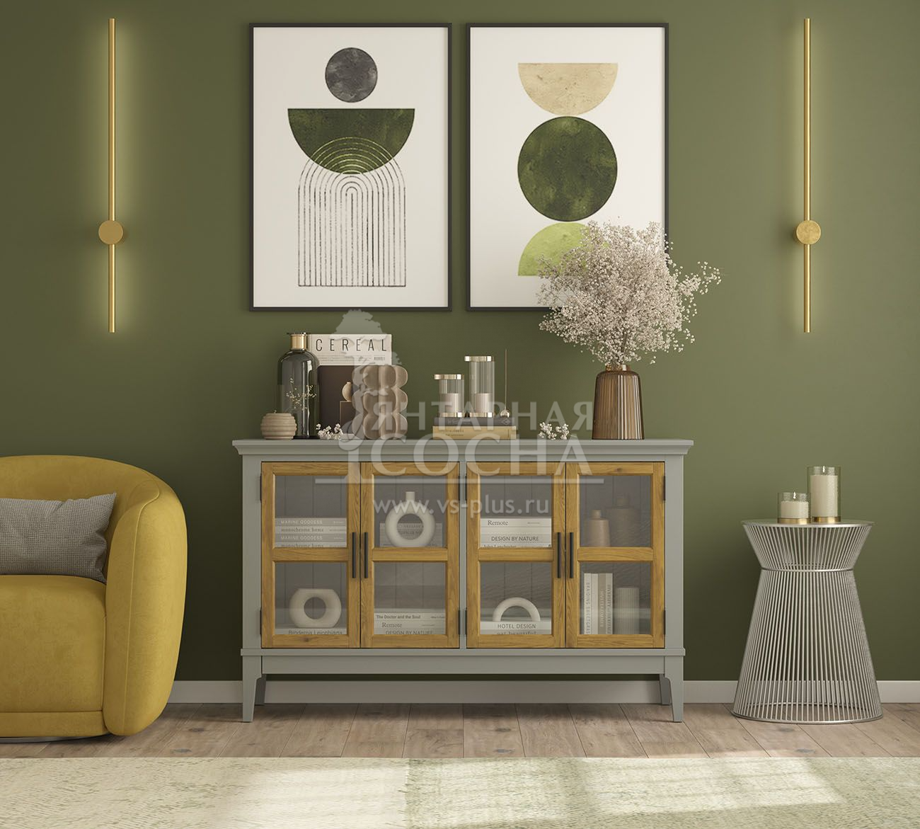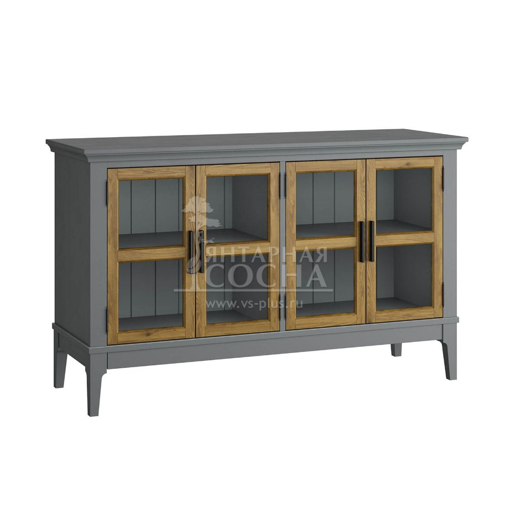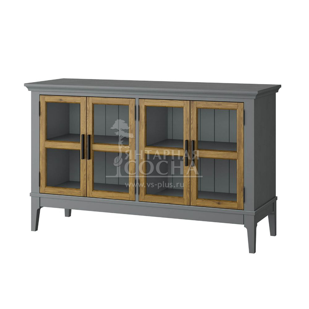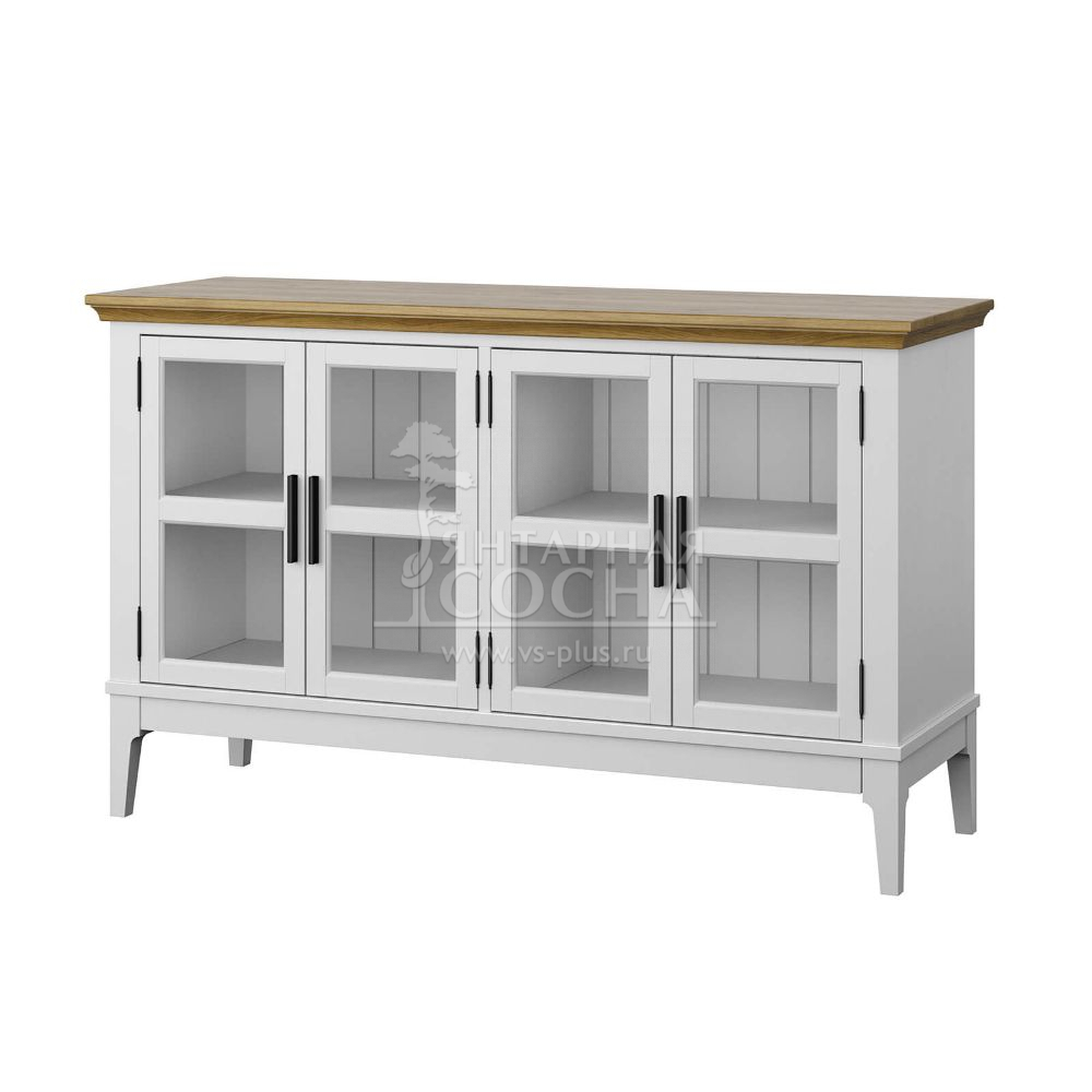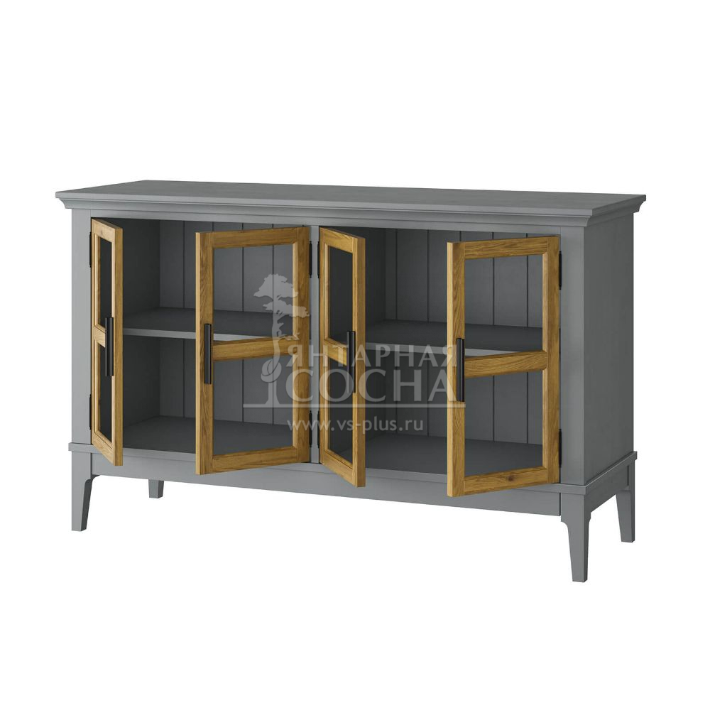 Два вместительных отсека за четырьмя стеклянными дверками — позволяют эффектно презентовать декоративные предметы и хранить технику.