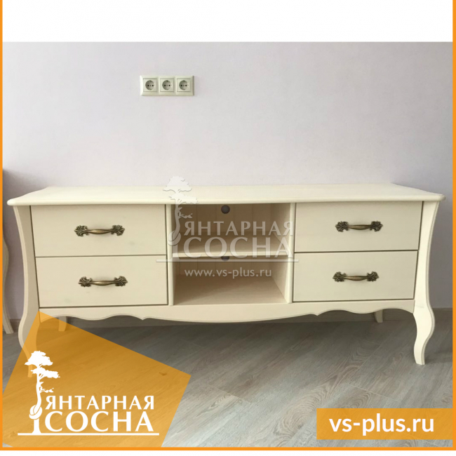 Тумба ТВ «Лебо» выполнена во французском стиле и представляет собой комфортное в использовании изделие. Модель изготовлена из качественного массива