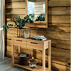 Полка под зеркалом делает модель ещё удобнее: на неё можно разместить косметику, аксессуары, ключи или ароматические диффузоры. Натуральная сосна с тёплым покрытием маслом «мёд» подчёркивает природную структуру дерева и создаёт уют в интерьере.