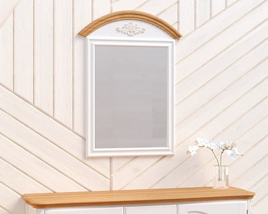 Зеркало с рамой из сосны и встроенной полкой для хранения ключей, мелочей или декоративных элементов.