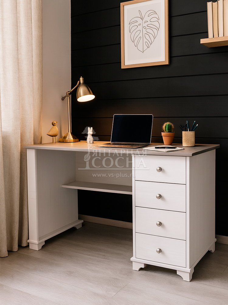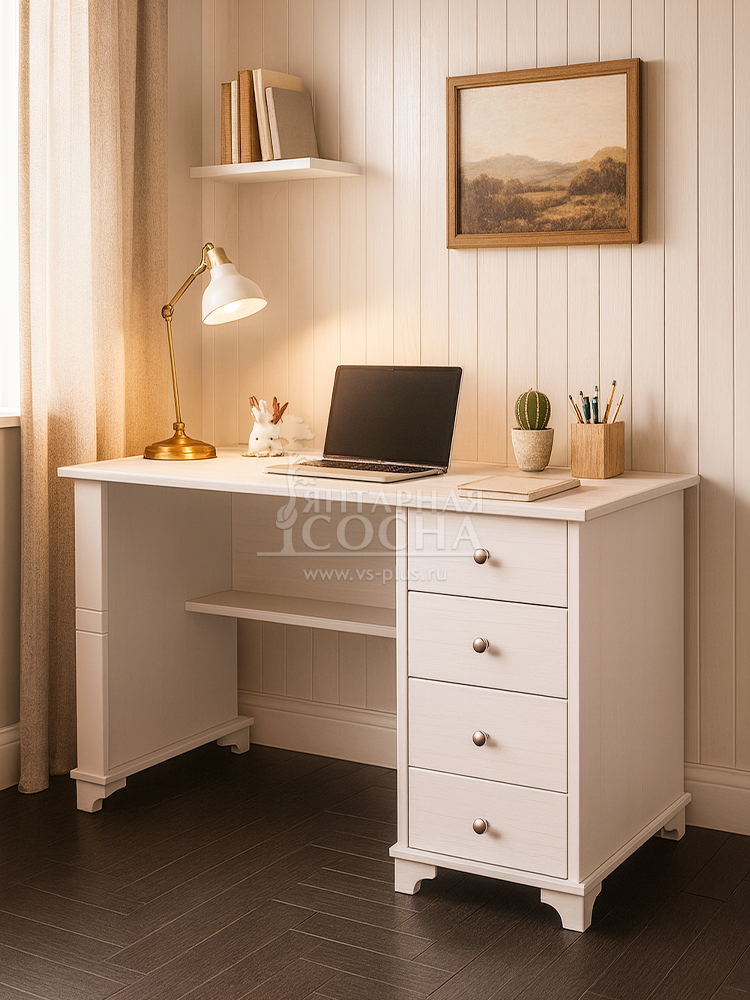 Письменный стол с полками сочетает просторную рабочую поверхность и удобное место для хранения. На полках можно разместить книги, папки, аксессуары или декоративные элементы.