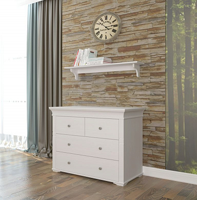 Отзыв: Покрытие белой краской на водной основе в один слой может кому-то не понравиться, так как просвечиваются извилины сосны. Однако за это и любят деревянную мебель!